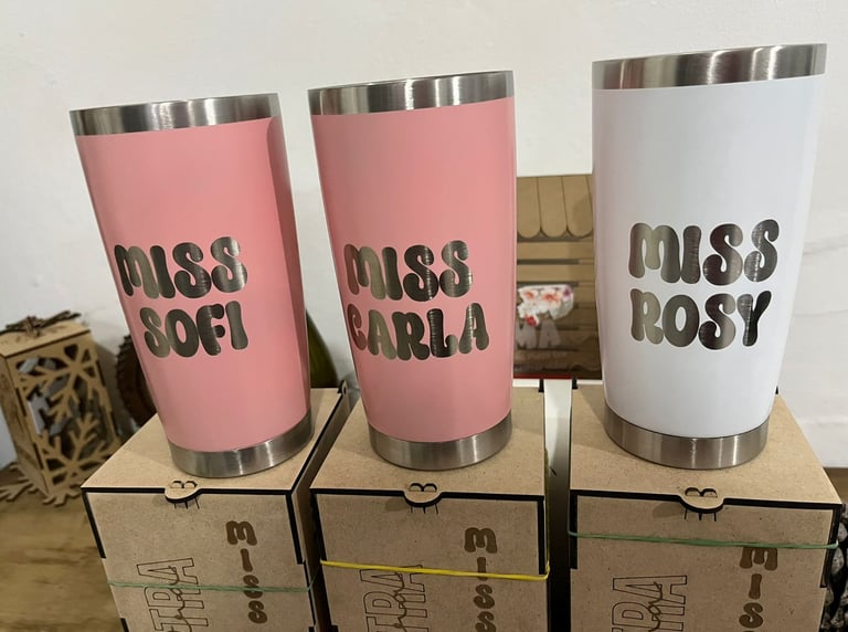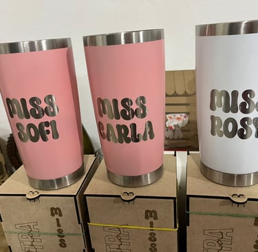 En Diamy Laser Cut, creamos artículos únicos como termos grabados, impresión 3D y estampados de playeras personalizadas para cada cliente.