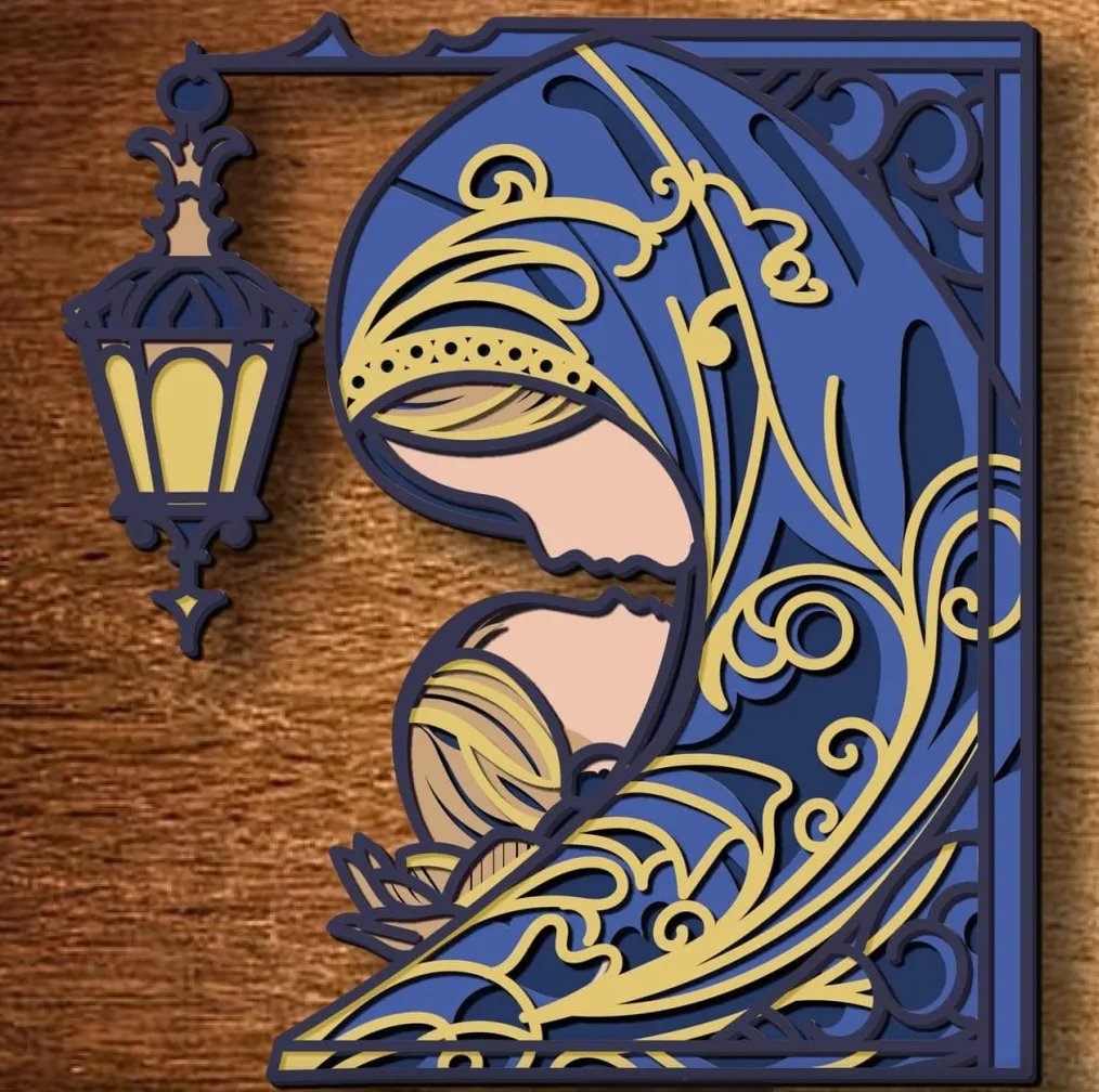 Ilumina tu hogar con esta hermosa imagen de la Virgen María en un elegante cuadro multicapas que combina la devoción con el arte decorativo. Cada capa ha sido cuidadosamente diseñada para crear profundidad y realce, dándole a tu espacio ese toque sagrado y elegante que buscas.